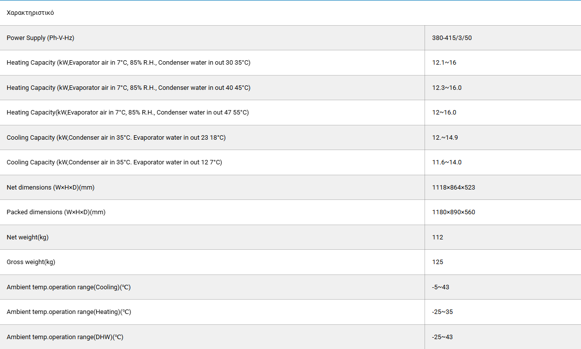 | Χαρακτηριστικά και δυνατότητες | Full DC Inverter, Αθόρυβη Λειτουργία, Ζεστό Νερό Χρήσης, Θέρμανση & Ψύξη, Λειτουργία Wi-Fi, Λειτουργία έως -25ᵒC, Υψηλή Ενεργειακή Απόδοση |